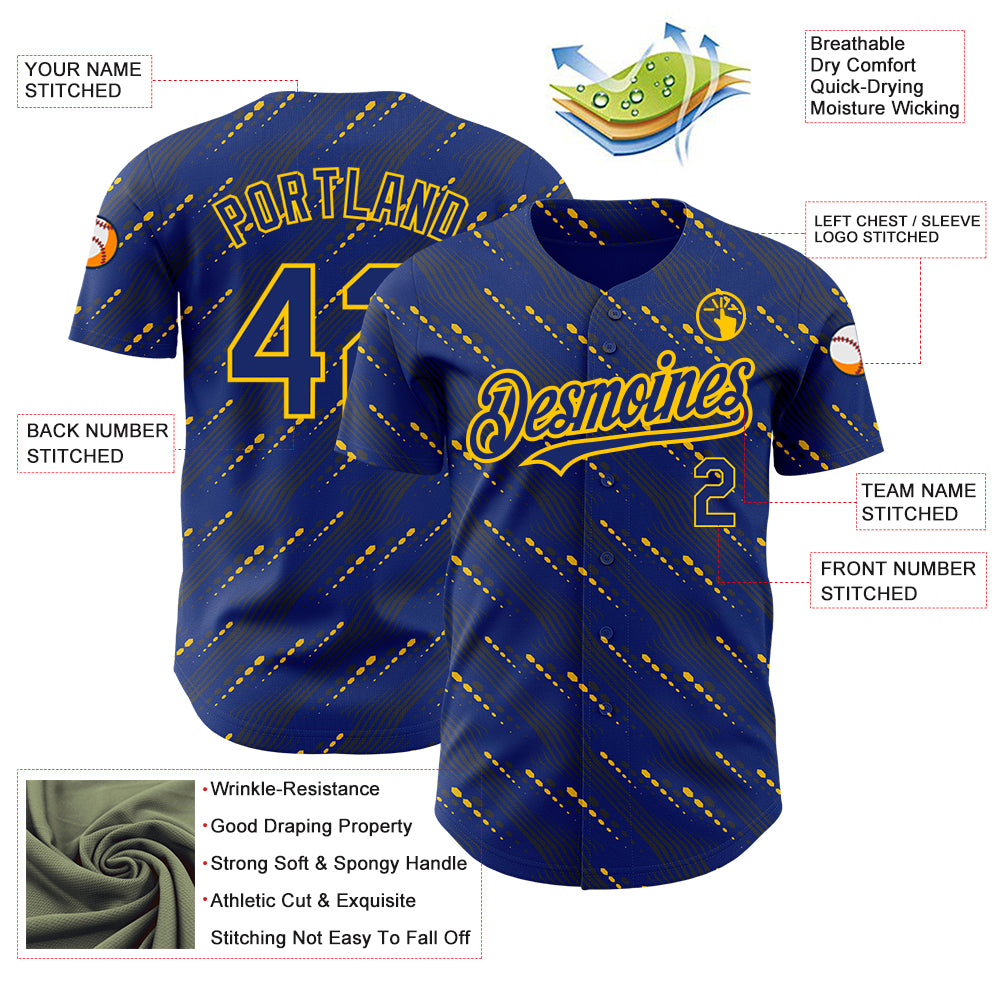Custom Royal Yellow 3D Pattern Design Slant Lines Authentic Baseball Jersey