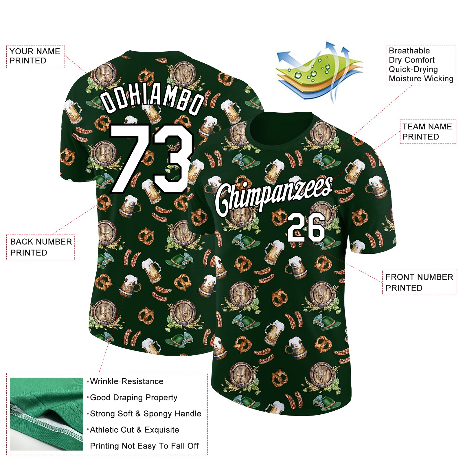 Custom Black White 3D Pattern Design Oktoberfest Beer Festival Performance T-Shirt